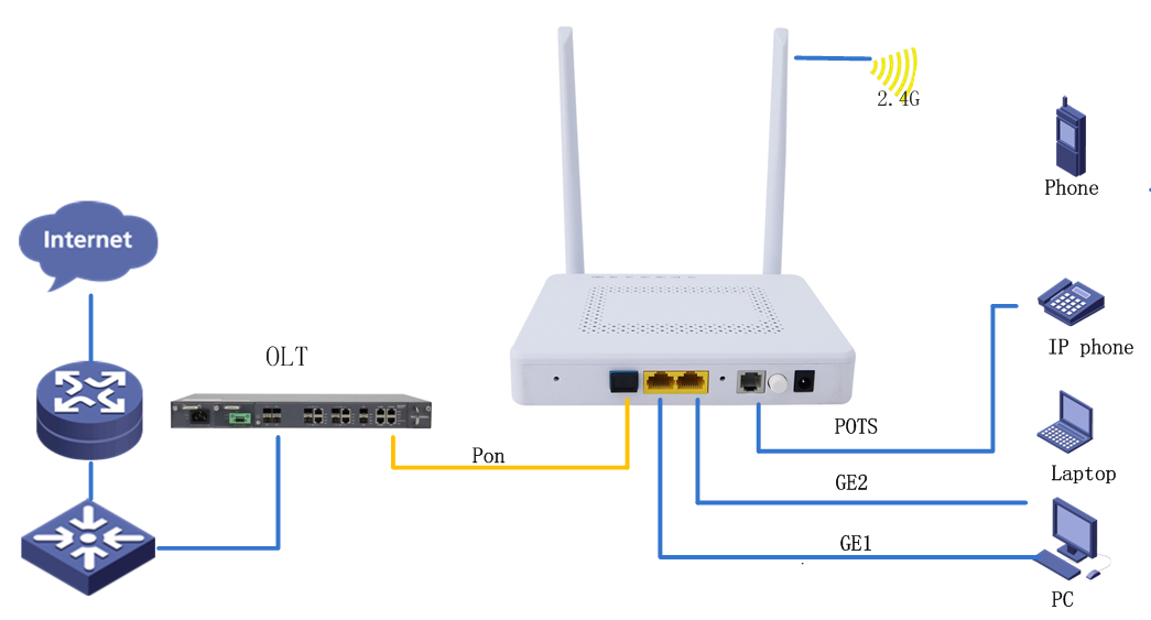 Support fast transmission of hardware NAT Hardware Specifications         interface: 1* G/EPON+1*GE+1*FE+2.4GWIFI WLAN+1*FXS