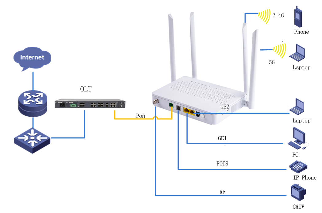interface: 1* G/EPON+2*GE+2.4G/5.8G WLAN+1*RF+1*FXS